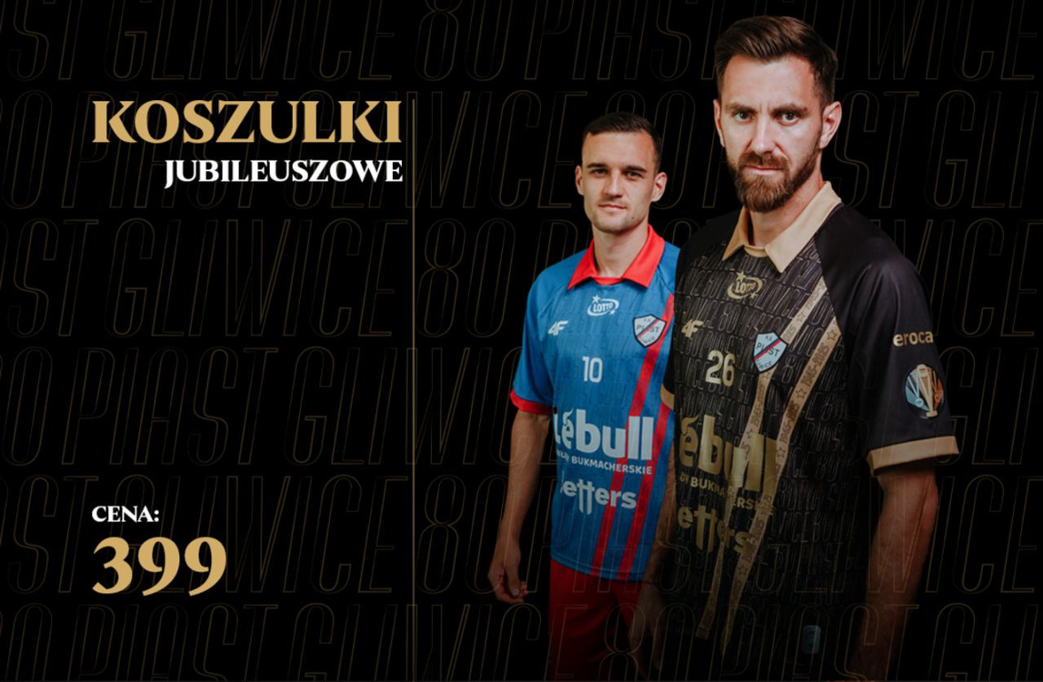 Od 1945 roku Piast Gliwice buduje swoją markę na piłkarskiej mapie Polski. To 80 lat historii budowanej przez pokolenia Niebiesko-Czerwonych. To opowieść, której rozdziały są dalej pisane na naszych oczach. Chcąc uczcić te osiem dekad historii przygotowaliśmy unikalne koszulki jubileuszowe, które można kupić w klasycznej, niebiesko-czerwonej wersji lub bramkarskiej, czarno-złotej.