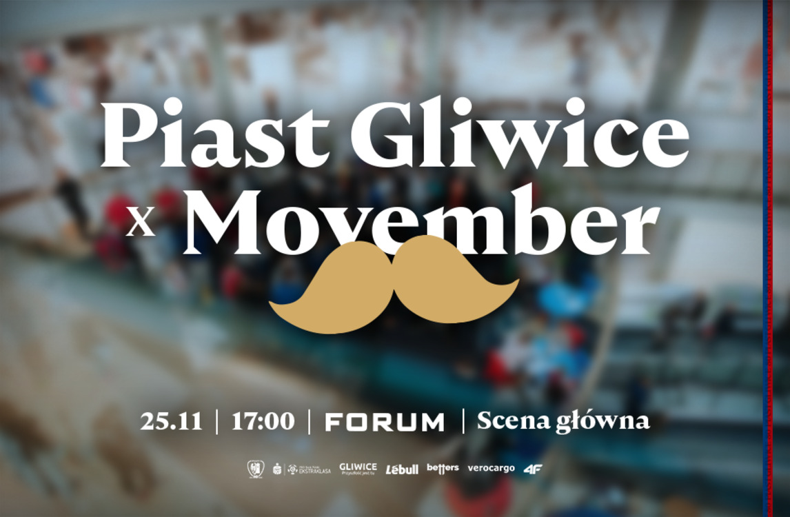 We wtorek 25 listopada Piast Gliwice zaprasza wszystkich kibiców do udziału w specjalnym wydarzeniu poświęconym zdrowiu. Od godziny 17:00 na Scenie Głównej w Forum Gliwice na uczestników czeka mnóstwo atrakcji oraz niecodzienna okazja, by okazać wsparcie w ramach kampanii Movember.