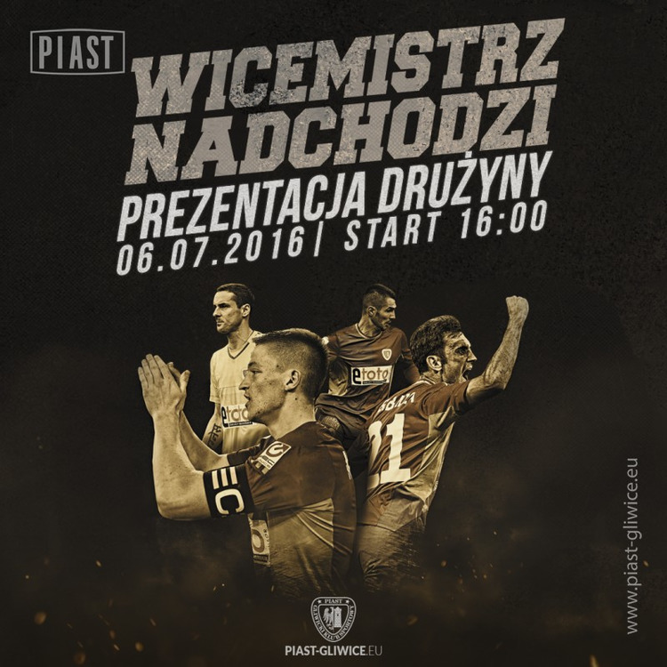 6 lipca na stadionie przy ul. Okrzei 20 odbędzie się prezentacja zawodników Piasta Gliwice - wicemistrzów Polski. Wydarzenie będzie połączone ze sparingiem Niebiesko-Czerwonych z Sigmą Ołomuniec.