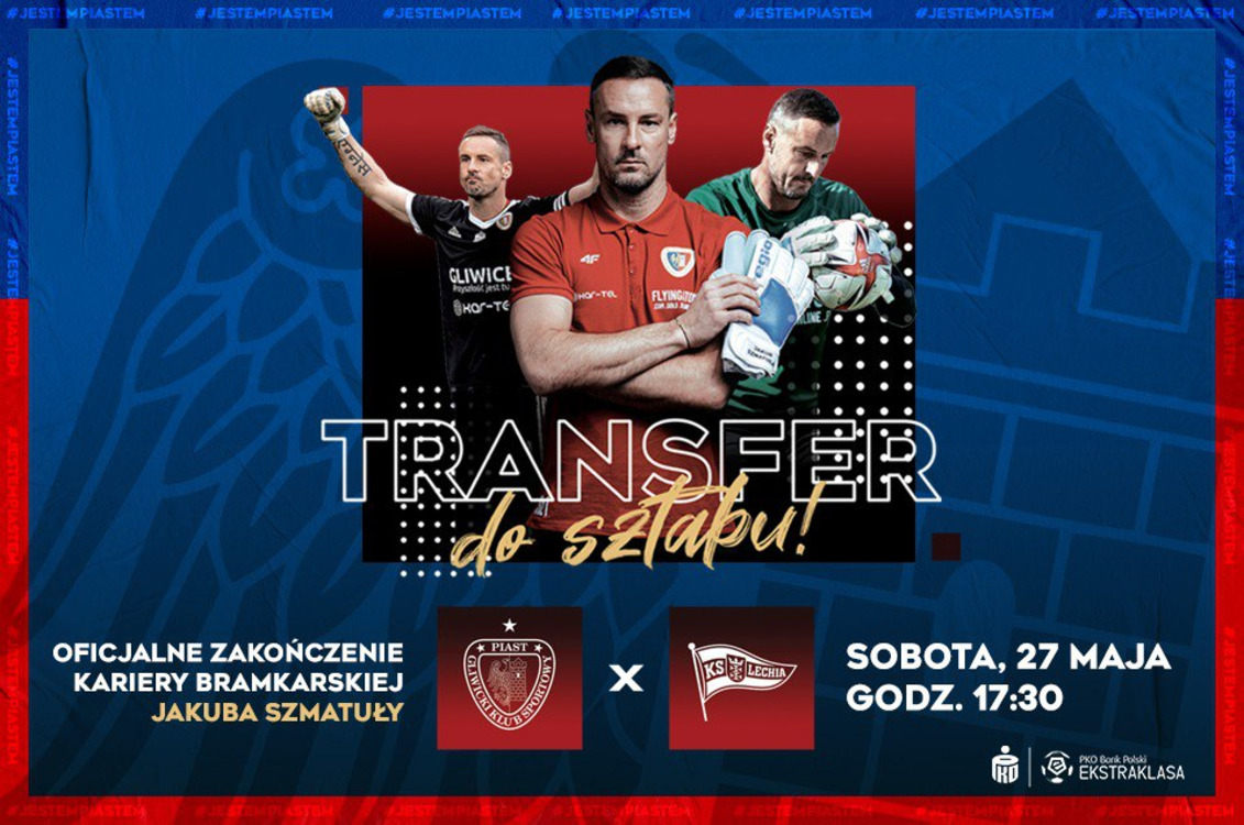 Ostatni mecz sezonu będzie okazją nie tylko do zakończenia rozgrywek, ale będzie to również okazja, aby podziękować Jakubowi Szmatule za występy w barwach Piasta Gliwice. Spotkanie z Lechią Gdańsk będzie bowiem oficjalnym zakończeniem kariery piłkarskiej mistrza Polski z 2019 roku.